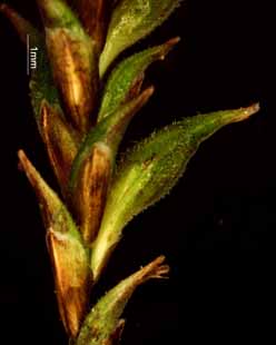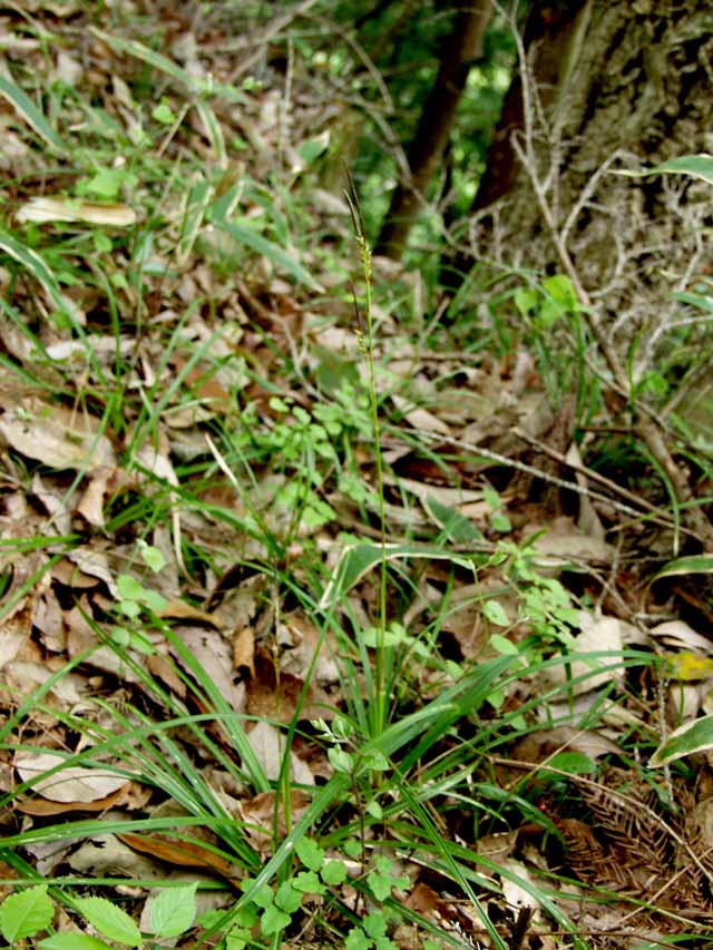 【同定のカギ】山地の林床や林縁に生える多年草で、匐枝を横走しやや硬い。葉は硬く、縁は著しくざらつく。小穂は、雄雌性で上部の半分以上は雄花、雌花は離れて付く。果胞は、雌鱗片より長く、外曲し稜間に8−10脈があり、疎に短毛があり、上部はしだいに狭まり長嘴となり、開出する。痩果の基部には柄があり、頂部に小型の盤状付属体がある。柱頭は3岐。【国内分布】:本州、四国、九州。日本固有。 【ノート】コカンスゲは側小穂が雄雌性であり、常に横走する匐枝を持つことで、林床に生育するヒメカンスゲや近縁種と容易に区別できる。また、葉縁が手を切るぐらい著しくざらつくことでも区別される。匐枝で栄養繁殖することから林床一面に生育するのがよく見られる。また、日の余り当たらない林床では花茎が大変少ないが、林縁の日向では花茎が多く立ち上がる。