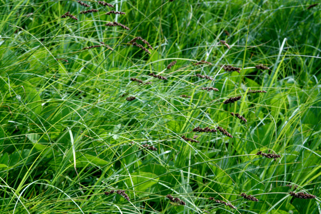クリイロスゲ 鱗片が褐色で小穂が目立つ