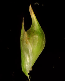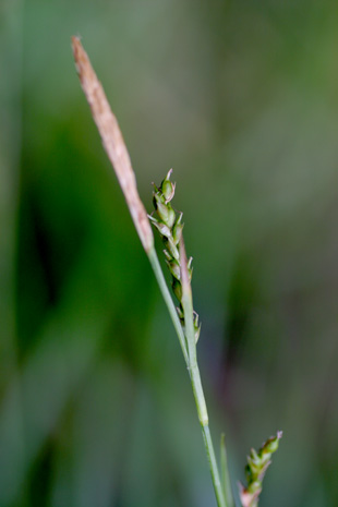 クジュウスゲ、匍蔔枝を持つ 雌小穂、果胞の嘴が長い
