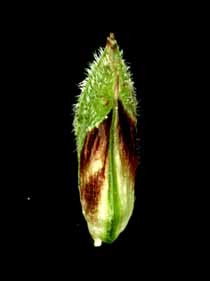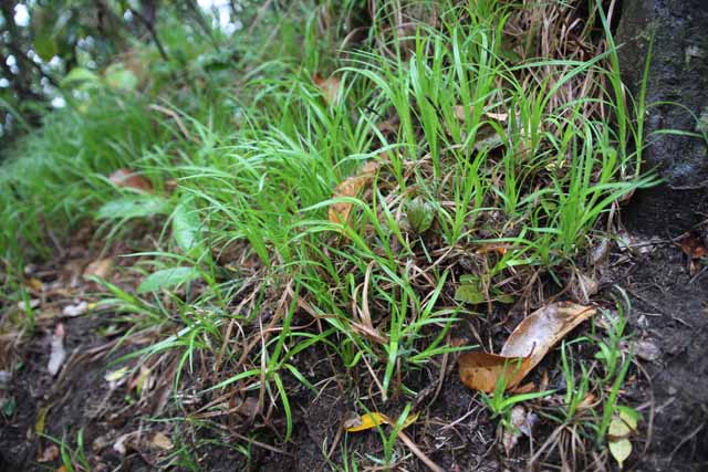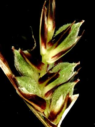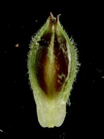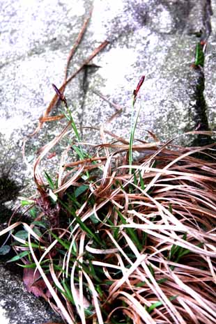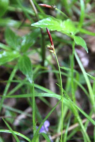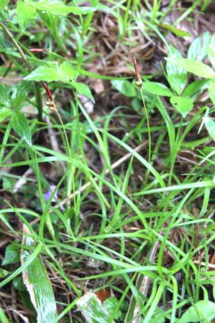 【同定のカギ】山地のやや乾いた樹林内に群生する多年草で、根茎は分枝して斜上する。小穂は頂部にかたまり、雌花の果胞は少ない。鱗片は赤紫褐色〜黒褐色。果胞は、下部が肥厚し、稜間に太脈があり、短毛が生え、上部はしだいに狭まり短嘴となり、口部は黒褐色を帯びる。柱頭は3岐。【国内分布】本州(岩手県、栃木県、群馬県、茨城県、岐阜県、三重県)、四国(愛媛県)、九州(鹿児島県)。日本固有。 【ノート】クロヒナスゲは関東地方の山地では比較的広く分布するが、岐阜県、三重県、愛媛県、鹿児島県に隔離分布する。