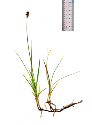 【同定のカギ】砂質の草地、湿地の周辺および海岸の砂地に生える多年草で、横走する長い根茎がある。小穂は頂部に集まり、雄雌性。果胞は、背面に多数脈、無毛、両側の縁は細鋸歯状、上部はしだいに狭くなり長嘴、口部は斜切形、基部は海面状に肥厚。柱頭は2岐。【国内分布】【国内分布】北海道、本州、四国、九州。【国外分布】朝鮮、中国北部、南千島、サハリン、東ロシア。 【ノート】砂地では根茎が一方向に長く伸び、節から一個ずつシュートが出る。平地では田の畦でも見られる。アサマスゲやウスイロスゲに似るが、果胞の両側の縁が翼状とならない。カワズスゲとは小穂の付き方や果胞の形態が異なる。