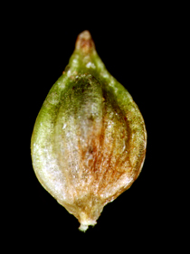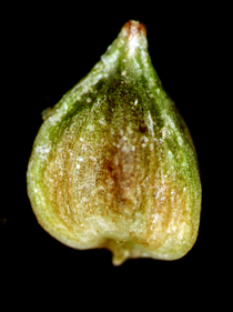【同定のカギ】平地の湿地に生える多年草。有花茎は平滑。花序は頂生し、雄性部は長さ0.3−1 cm。雌性部は短柱形で長さ0.3〜1cm。果胞は、雌鱗片とほぼ同長、楕円形−卵形、長さ1.5〜2 mm、稜間に5−9脈あり、平滑、嘴は短く、開出、口部は凹形。痩果は、緩く果胞に包まれる。柱頭は3岐。Carex biwensis Franch. 【国内分布】北海道、本州、四国、九州。【国外分布】朝鮮、中国、ウスリー。 【ノート】マツバスゲは、ハリガネスゲとよく似るが、小穂が長く果胞が小さい(マツバスゲ:小穂1〜2cm、果胞1.5〜2 mm ハリガネスゲ小穂0.5〜1cm、果胞2〜3mm)。