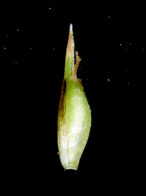 ミヤケスゲ 雌小穂、鱗片には短い芒