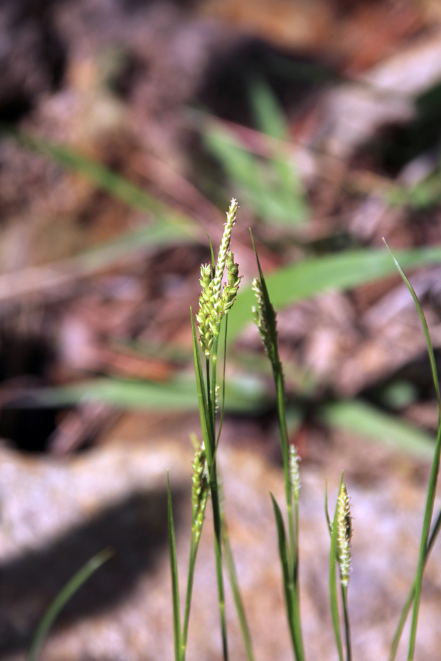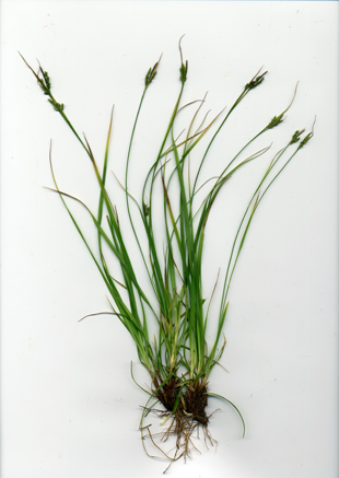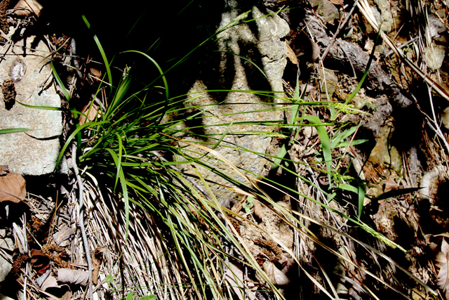 山地のやや乾燥した草地や路傍に生える。葉は、やや硬質でざらつく。雄小穂は頂生し線形。花序は上部に集まる。果胞は、雌鱗片より長く、短毛を粗布、短嘴、口部は凹形。。柱頭は3岐。