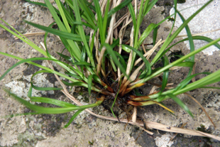 【同定のカギ】渓流沿いの岩場に普通に生える小型の多年草で密に叢生し大株となり、細く短い匐枝がある。全体が柔らかい。雄小穂を頂生し、雌小穂は柄があり下垂する。果胞は、雌鱗片より超出し、稜間に10−12脈があり、無毛、上部はしだいに狭まり長い嘴となり、口部は切形。柱頭は3岐。Carex curvicollis Franch. et Sav. 【国内分布】北海道、本州、四国、九州。日本固有。 【ノート】全国の渓流の岩場に普通に見られ大株となる。水際の岩を覆うように群生している。小穂は下垂し、植物体は小型で全体が柔らかく、雄鱗片は紫紅色。