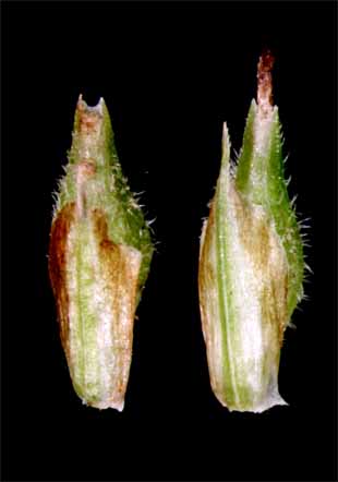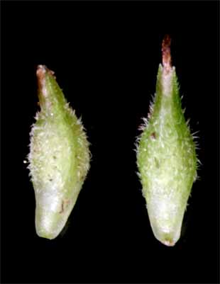 | 鱗片と果胞、果胞の口部は2小歯 果胞、密に毛、嘴は短い |