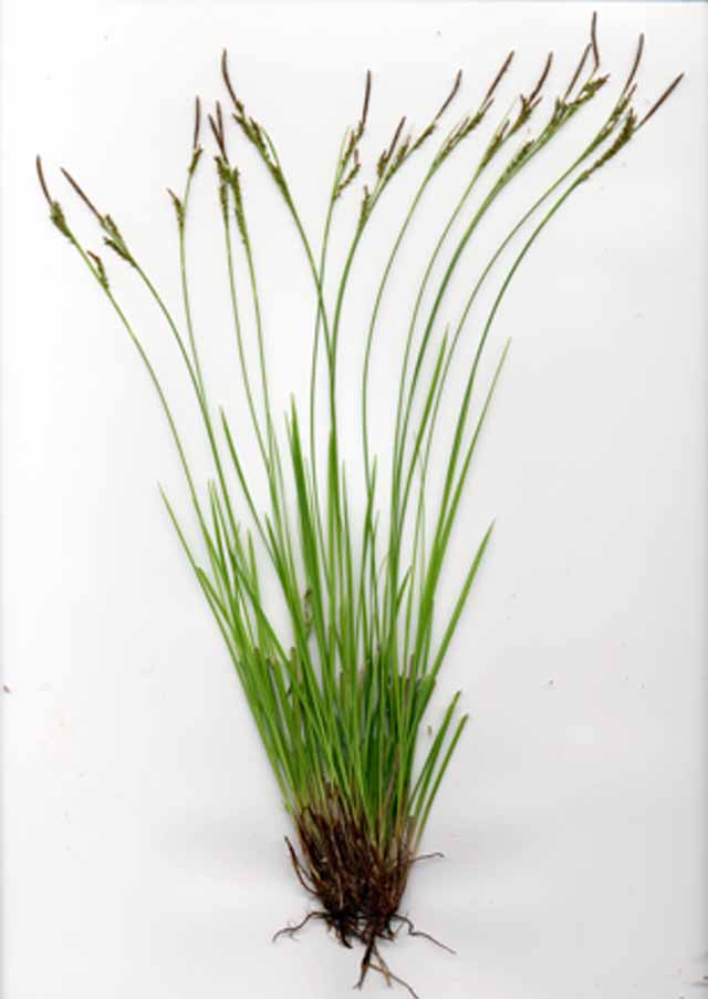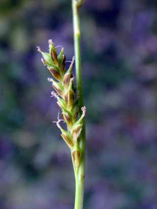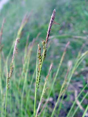 | 花序 雄小穂を頂生、短い柄がある 雌小穂、鱗片は褐色 |