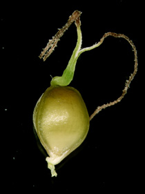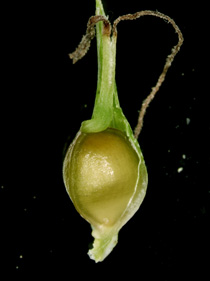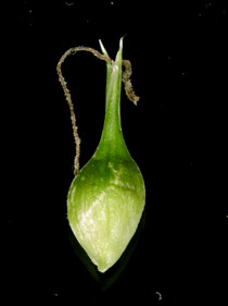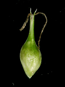 【同定のカギ】アカマツ林の林床や乾燥した樹林内に生える多年草で、疎らに生え、長い匐枝がある。果胞は、雌鱗片より長く、熟すとやや開出し、無毛、上部はしだいに狭まり長い嘴となり、口部は2歯。花柱の基部は湾曲する。柱頭は3岐。【国内分布】本州(福井県−鳥取県、広島県の日本海側)。日本固有。 【ノート】2004年に鳥取県をタイプロカリティとして新種発表された。長い匐枝、長嘴の口部が2歯となることが特徴的である。