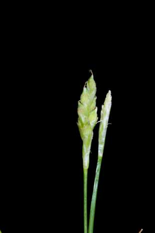 林縁の斜面に生える。やや叢生、稀に短い匐枝。苞葉は短く刺状。小穂は長い柄を持ち、鱗片は緑白色。果胞は、雌鱗片より長く、明瞭な脈、短毛を密布、短嘴、口部は凹形、基部は長柄。柱頭は3岐。