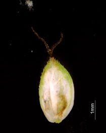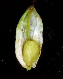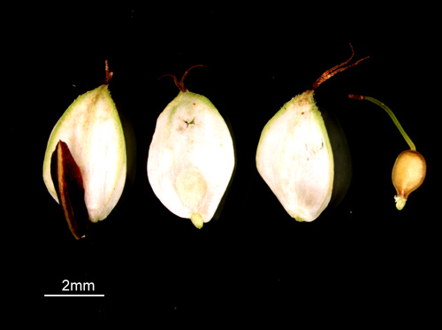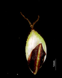果胞と鱗片 果胞、脈は不明瞭 果胞、稜上に刺毛