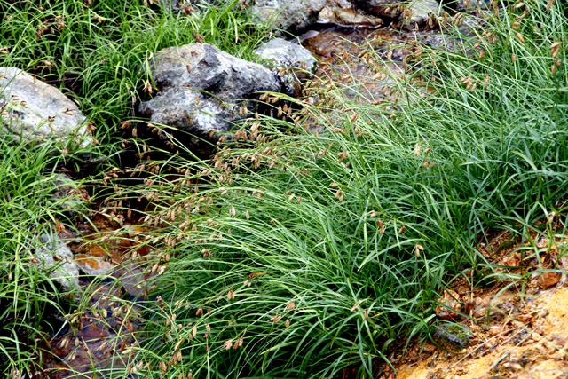 ヤマタヌキラン 群生地、葉は柔らかい