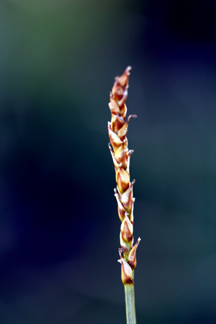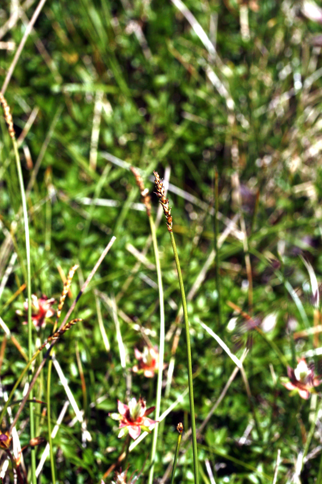 Carex kabanovii V. Krecz. 【国内分布】北海道(大雪山の高層湿原に稀産する)。【国外分布】サハリン。 【同定のカギ】雌雄異株(まれに同株)で、高山の湿地に生える。葉は硬質。花序は、単性だがまれに雄雌性。果胞は、雌鱗片より長く、背面に少数脈あり、無毛、後に斜めに開出、上部は狭まってやや長い嘴となり、口部はやや開出した2歯があり、基部は海綿状に肥厚する。柱頭は3岐。 【ノート】カンチスゲに似るが、葉の幅が広く、小穂が長い。また、果胞の嘴は長く、口部はやや深い2歯となり、果胞が雌鱗片より長い。