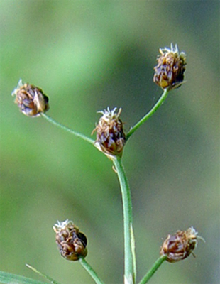 【同定のカギ】田畑の畦や日当たりの良い湿地に普通に生え、叢生する。有花茎は、高さ20−60 cm。花序は、数回分枝し、複散房状、長さ4−8 cm。小穂は、長さ2.5−3.5 mm、幅1−1.5 mm、褐色。痩果は、長さ約0.6 mm、横断面は3稜形、乳白色で光沢があり、表面に浅い横紋があり乳頭状突起を疎らにつける。花柱の基部は、ややふくらむ。柱頭は、3岐。Fimbristylis littoralis Gaudich. 【国内分布】本州、四国、九州。【国外分布】台湾、朝鮮南部、満州、中国、インド、マレーシア、オーストラリア、ミクロネシア、北アメリカ西部海岸沿い。 【ノート】小穂が大きく、長さ3−4.5 mm、幅2−2.5 mmのタイワンヒデリコ (F. littoralis Gaudich. var. koidzumiana (Ohwi) T.Koyama) が報告されている。