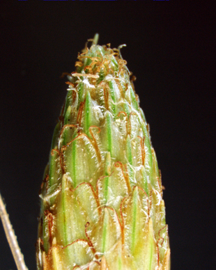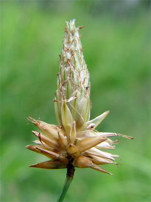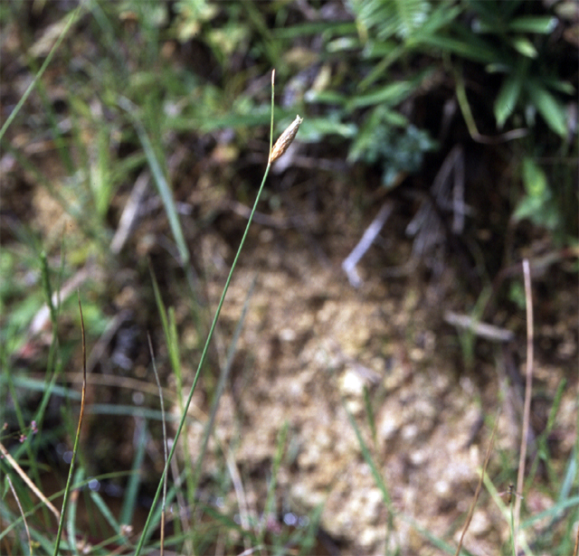 【同定のカギ】山地や日当たりの良い湿地に普通に見られる多年草。有花茎は、直立して高さ10−60 cm。花序は、通常1個の小穂からなり、小穂の基部に苞葉が1枚ある。鱗片は、長さ4−6 mm、多数の細かい脈があり、黄白色、やや光沢があり無毛。痩果は、長さ1−1.2 mm、横断面はレンズ形、表面は平滑、濃褐色に熟し、基部に長い柄がある。花柱は、有毛で、長さ4−6 mm、極めて扁平。柱頭は、2岐。Fimbristylis subbispicata Nees et Meyen 【国内分布】北海道、本州、伊豆半島、四国、九州、琉球。【国外分布】朝鮮南部、満州、台湾、中国、インドシナ、マレーシア。 【ノート】ヤマイは、小穂がただ1つ頂生することでハリイ属に似るが、小穂直下に葉状の苞葉が1枚あり、刺針状花被片はない。