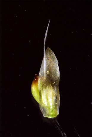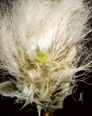 【同定のカギ】高層湿原の泥地や湿地に生える多年草で、密に叢生し大株となる。有花茎は、やや太く、高さ30−60 cm、数節ありその上部は紫褐色。花序は、花序:小穂1個が頂生する。小穂は、球形、花時は楕円形で長さ10−20 mm、花被片を多数つけ、果時には花被片が長くのび径が30−40 mmとなる、灰白色。鱗片は、披針形、長さ5−7 mm、鋭頭。花被片は、白くて細長く、果時には長さ20−25 mmになり、多数が宿存する。痩果は、長さ2−3 mm、平滑、横断面は3稜形。柱頭は、3岐。【国内分布】北海道、本州(中部地方以北)。【国外分布】千島、朝鮮南部、満州、サハリン−シベリア、ヨーロッパ、北アメリカ。 【ノート】ワタスゲは、大株となり匐枝がない。また、花被片はサギスゲなどより長く、40mmに達する。